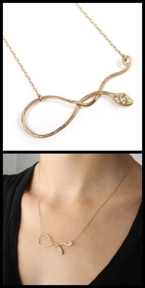 Yayoi Forest Serpentine necklace in 14k yellow gold with diamond eye ($598).