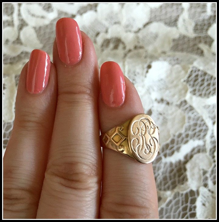 My signet ring has been waiting patiently in a drawer of my jewelry armoire since I found him last fall (thanks again to Susan of Circa 1700 for the find!). I’m very excited to finally be almost ready to integrate it into my regular rotation. Get ready to see this ring a LOT.