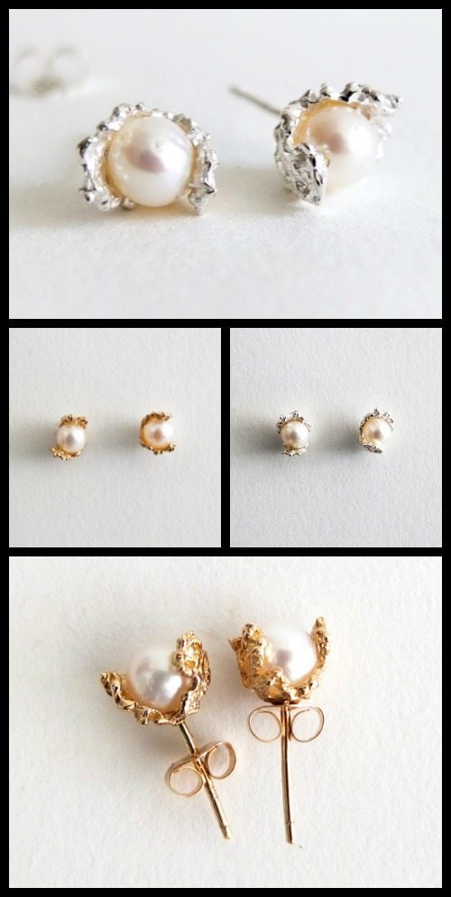 They’re gorgeous, aren’t they? Check out the color contrast of the 22k gold snakes twining around those beautifully textured oxidized sterling silver hoops.