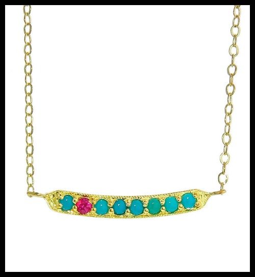 Elena Votsi Eros Ruby Heart necklace with 44 red rubies set in 18k yellow gold; at Stone and Strand ($1,800).