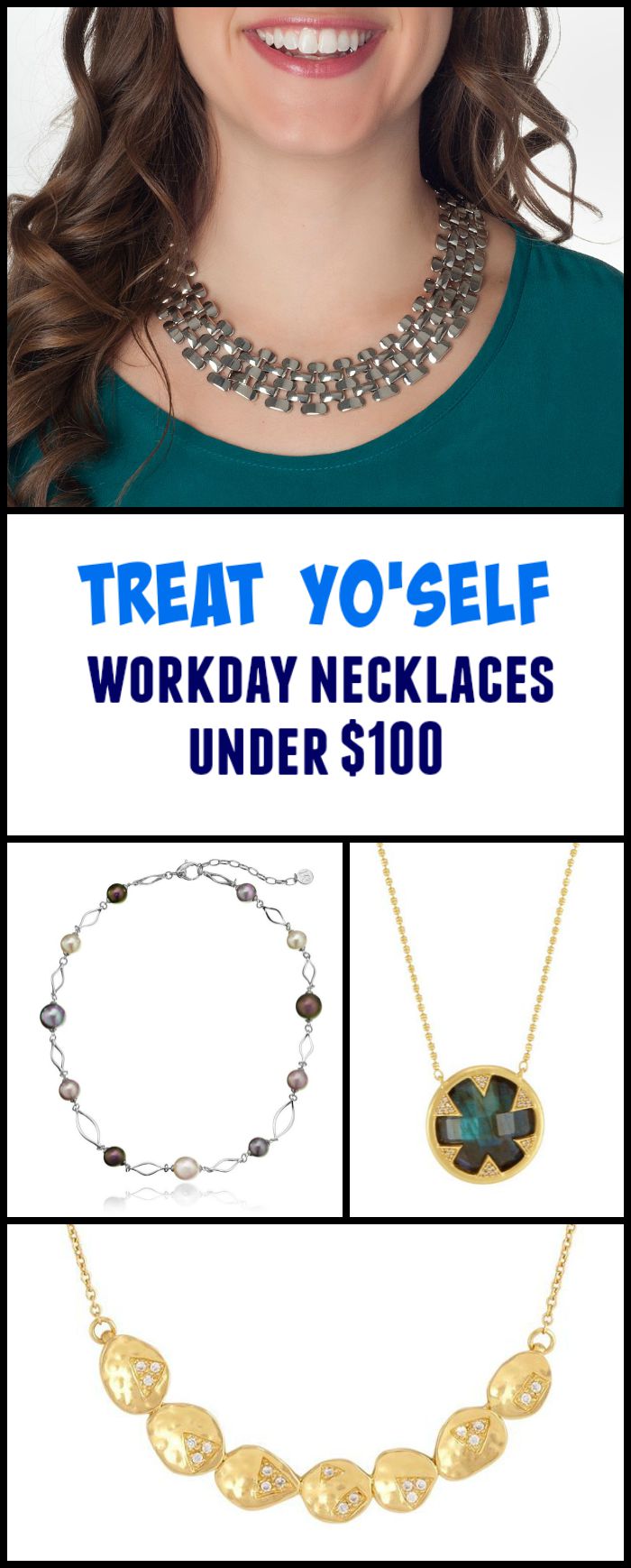 I was having lunch the other day with a dear friend who recently started a new job. I was telling her she should use some of her new salary to buy herself some fabulous jewelry (because I am a good influence at all times) and she said “Actually, what I really need is work necklaces.”