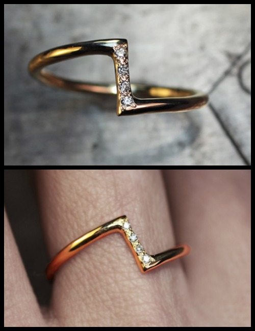 Like most ChincharMaloney pieces, my Zig Zag ring was available in brushed or polished gold. My other CM ring is brushed gold and it’s utterly perfect, but I went polished this time and I’m really glad I did. The tiny twinkle of the accent diamonds picks up the yellow gleam of the band and the effect is just gorgeous.