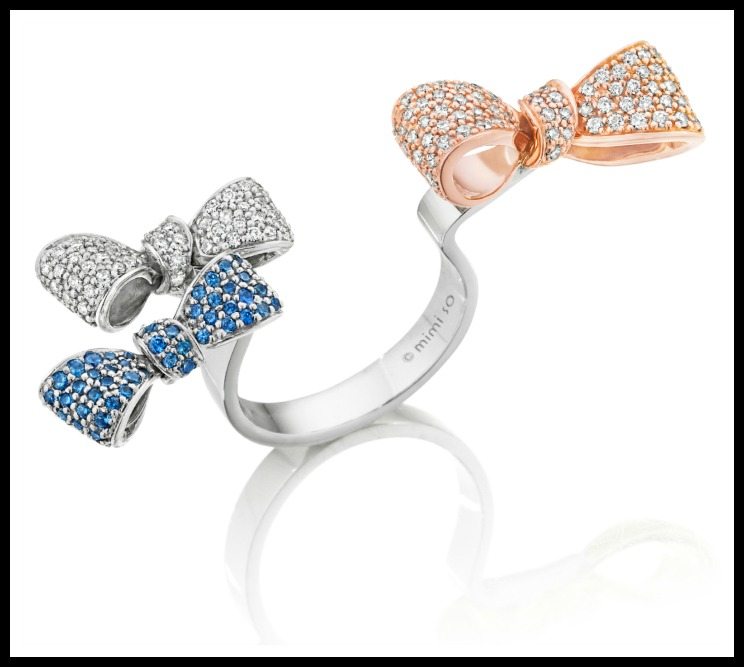 What’s better than a ring with one bow? A ring with MORE bows. So fabulous, yes? This between the finger bow ring by Mimi So is made of white and rose gold and is embellished with diamonds and sapphires.