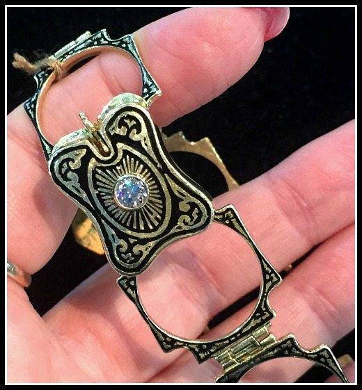 This was the first piece I saw at the Flea and my overall favorite by far. It’s a convertible Victorian ring/bracelet, an antique of incredible design in basically perfect condition. You see how the ring shank is many rows? That’s because it folds out into a bracelet.