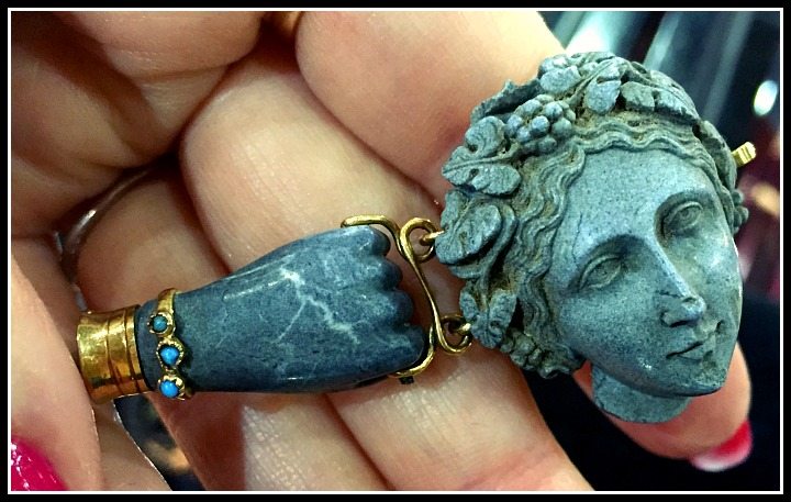 This beauty is a Victorian bracelet carved from lava. Lava!