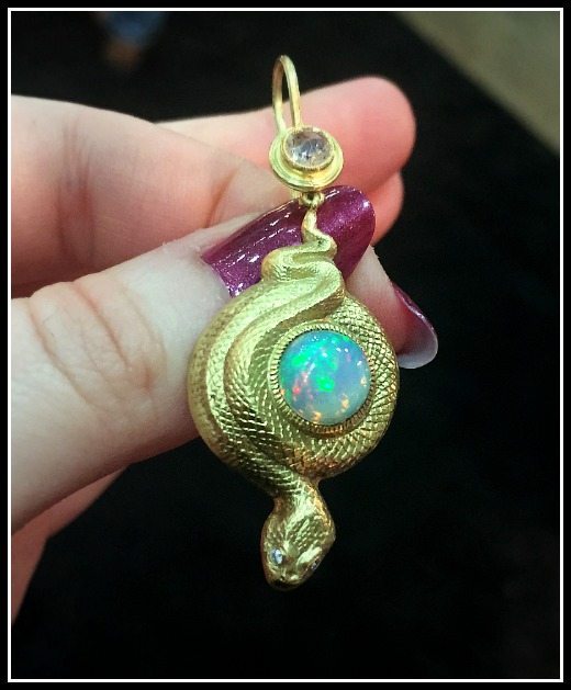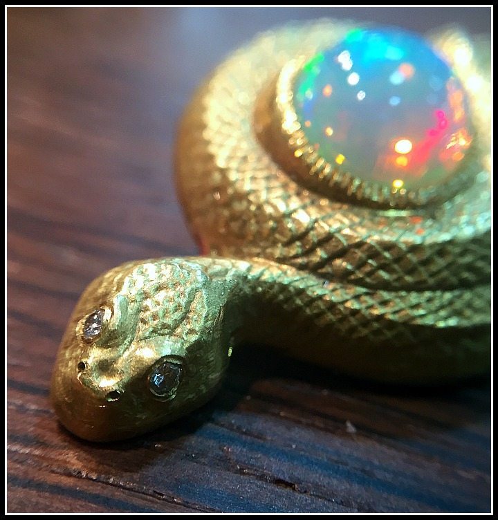 I intended that to sound magical and cool but it turned out a bit creepy, I’m afraid. My point remains the same: the snakes on these earrings are as noteworthy as the opals, which is really saying something.