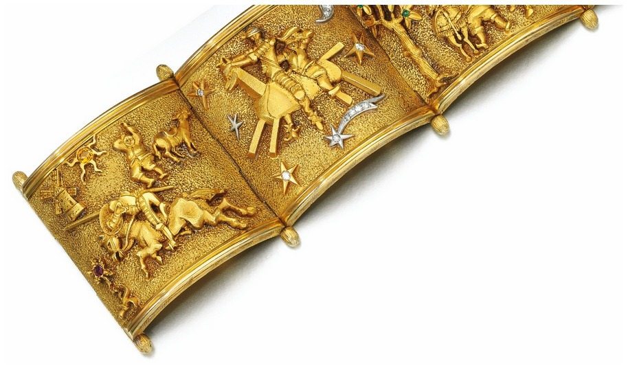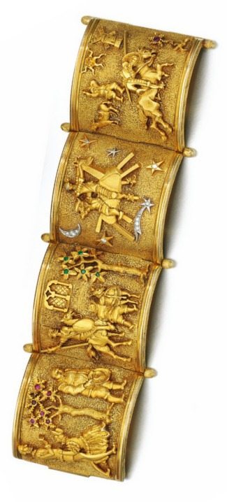 I can’t describe to you how exciting it was to handle this ring in person. Just look at the enamel the way it fades seamlessly from blue to green to blue along the side of the snake. That and the perfect contours of Medusa’s face – and the way the glass catches the light – are my favorite elements of this piece. It’s a treasure, and I hope it goes to someone who will appreciate it properly.