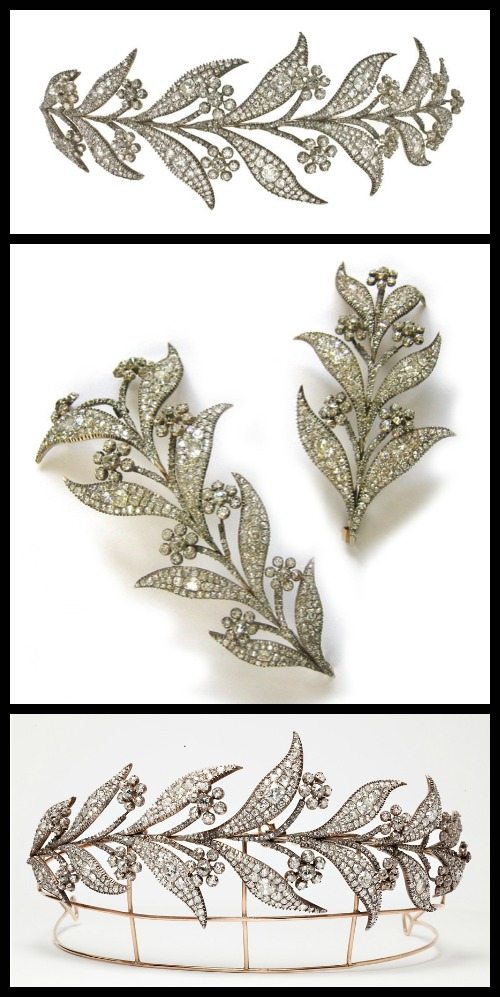 40 carat Georgian diamond tiara worn by Downton Abbey’s Lady Mary to her wedding. Circa 1800, convertible to two brooches ($191,757).
