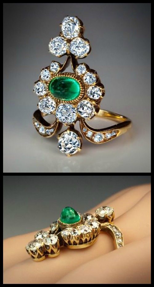Antique Belle Epoque Russian diamond and emerald ring ($17,500).