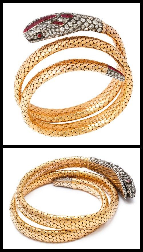 Antique Victorian old mine cut diamond and ruby snake bracelet ($62,000).