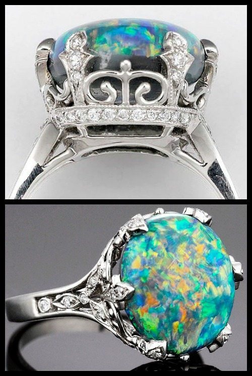This beauty is retro, dating to 1957. Can’t you see it at a glamorous late 1950’s cocktail party? The bright gemstones would sure pick up the colors of what ever stunning cocktail dress its glamorous owner would surely have been wearing.
