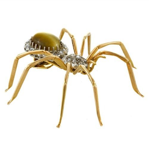 This beauty is similar in era to the previous piece of spider jewelry, but very different in execution.