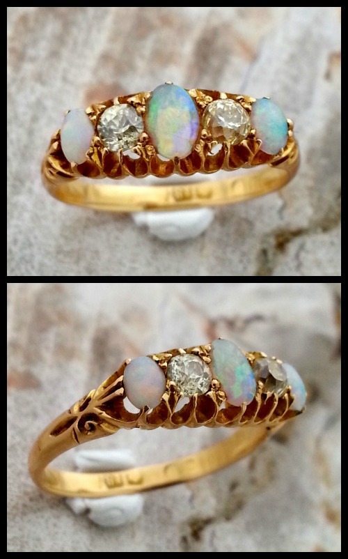 Antique Victorian “honeymoon” pendant necklace with enamel and a diamond in gold ($765).