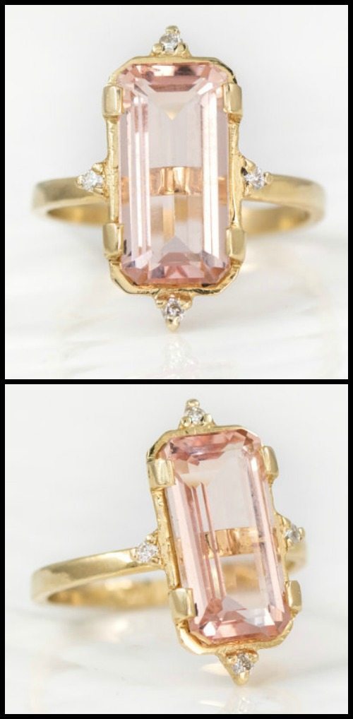 I love seeing a morganite in yellow gold. I know they’re frequently set in rose gold, and I understand that choice…but I think that the way the soft pink pops gently against the yellow setting is wonderful.