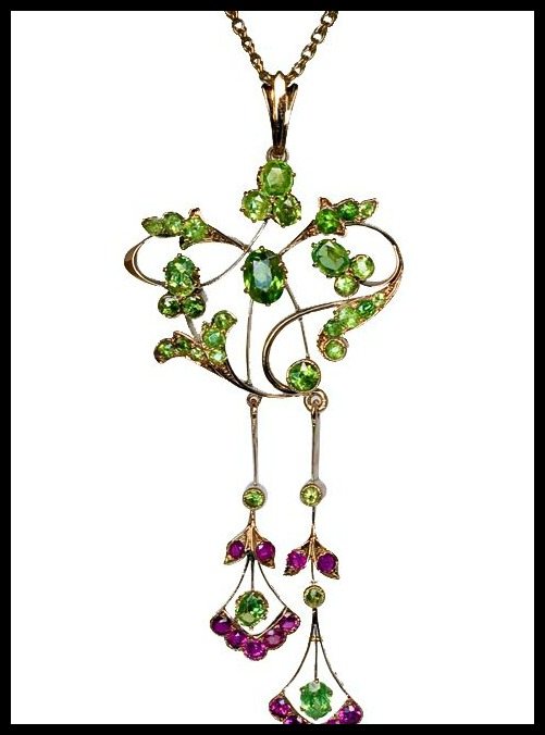 Antique Russian Art Nouveau demantoid and ruby pendant ($3,600).