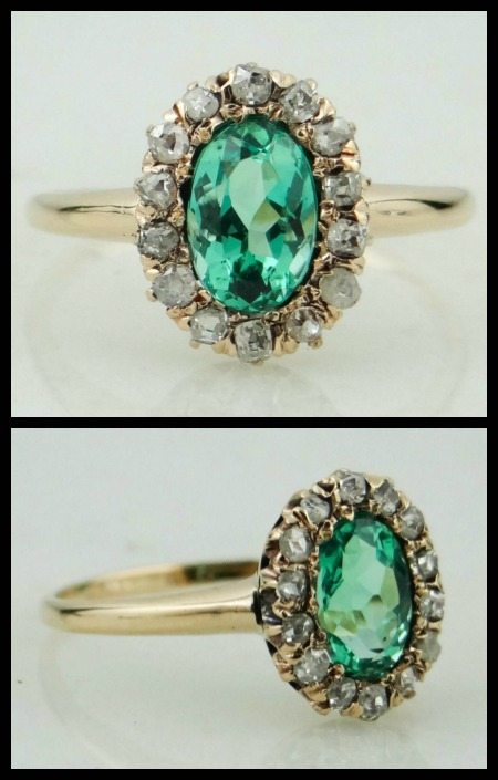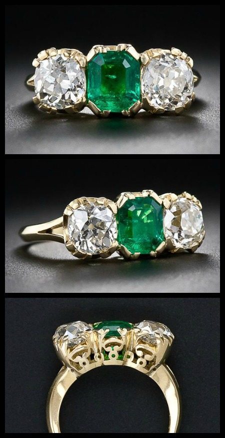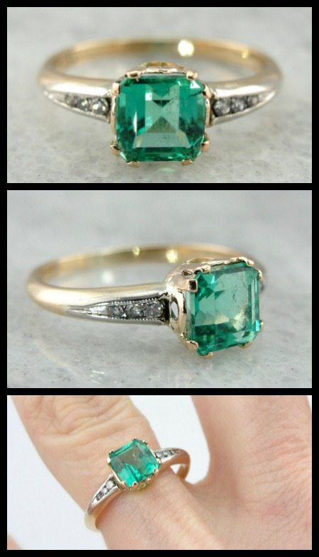 Here’s something round to balance out all of those angles in the previous ring. Market Square Jewelers has set this gorgeous antique rose cut diamond mounting with a new emerald, creating the beautiful piece you see above.