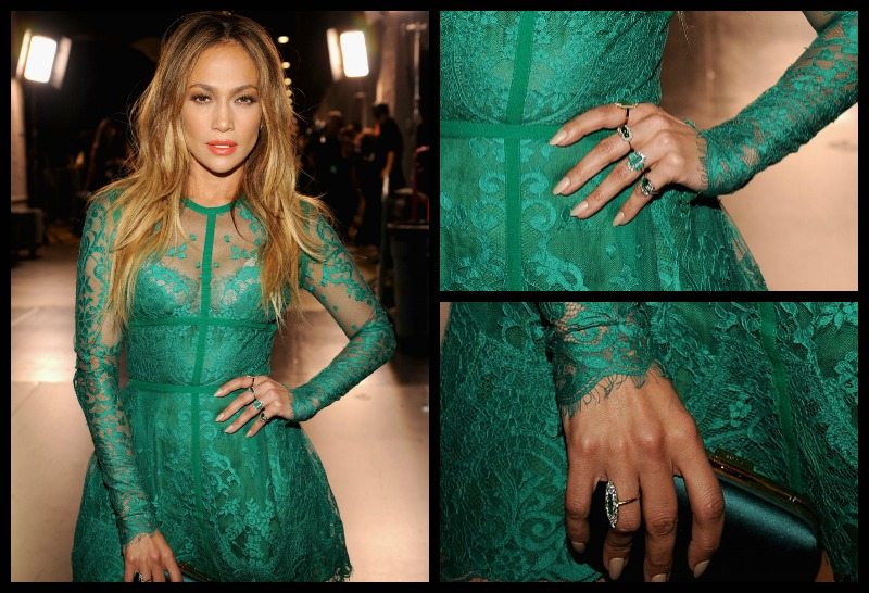 I’m heard some chatter about JLo’s outfit from the recent Teen’s Choice Awards: her orange lipstick, her delicate green lace, her “new” body…etc. But I only see one thing when I look at photos of Jenny from the Block’s TCA appearance: her RINGS.