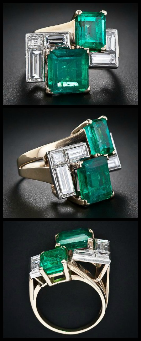 This 1920’s emerald and diamond bypass or “moi et toi” ring by Tiffany and Co. is made of perfection.